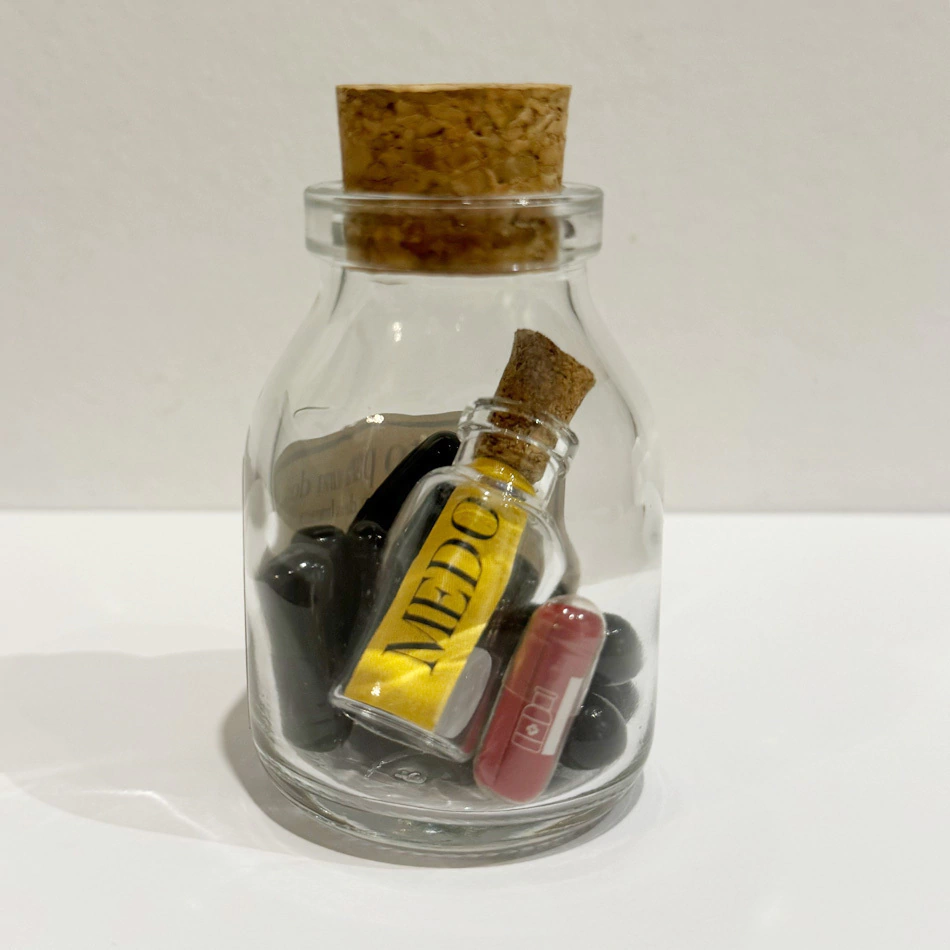 Um (01) vidro pequeno com o "veneno" (ex: medo), inserido dentro do vidro maior.