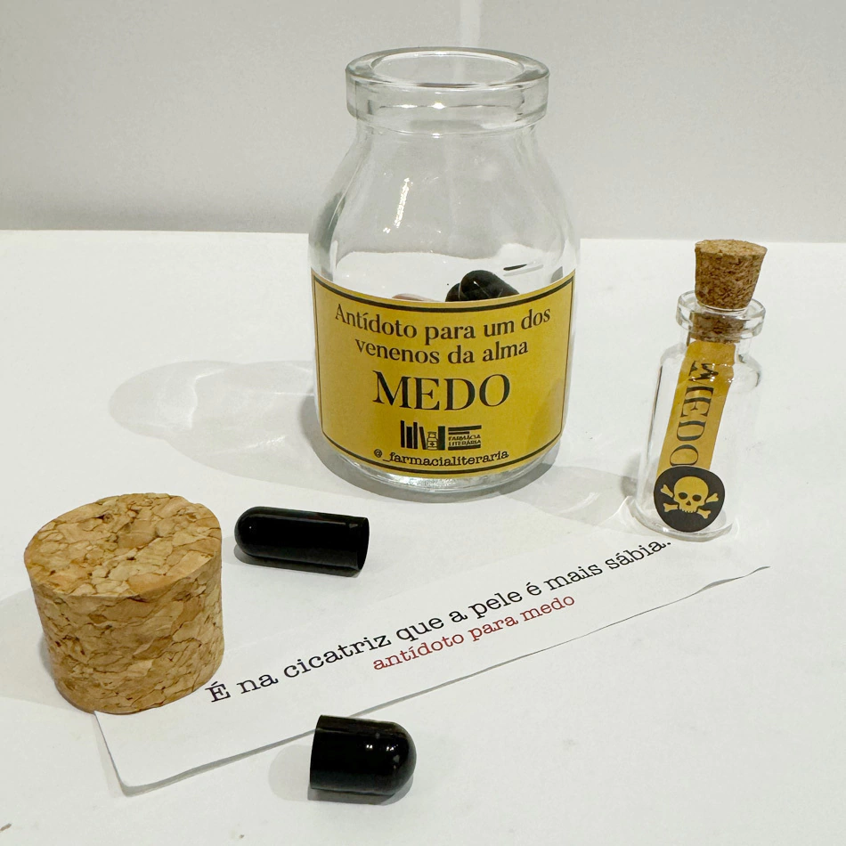 Quando o medo se instala e desafia a coragem, a Farmácia Literária oferece o Antídoto para Medo. Este frasco foi criado para trazer palavras de encorajamento e força, ajudando a superar as inseguranças e lembrando que a coragem também pode ser cultivada.
