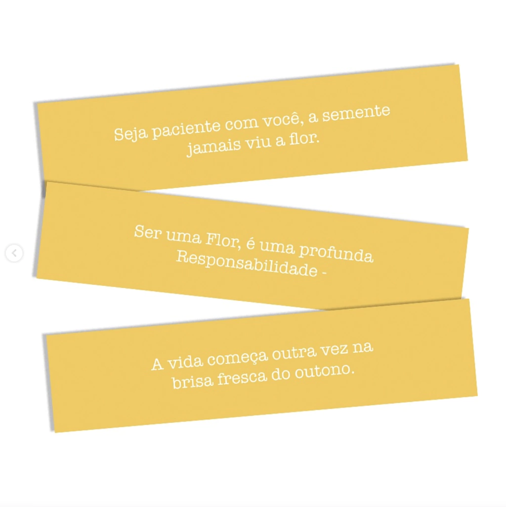 Um vidro com 20 citações cuidadosamente selecionadas: Cada pílula contém uma frase inspiradora escolhida pela nossa curadoria literária, para despertar o olhar para as sutilezas e surpresas da vida.